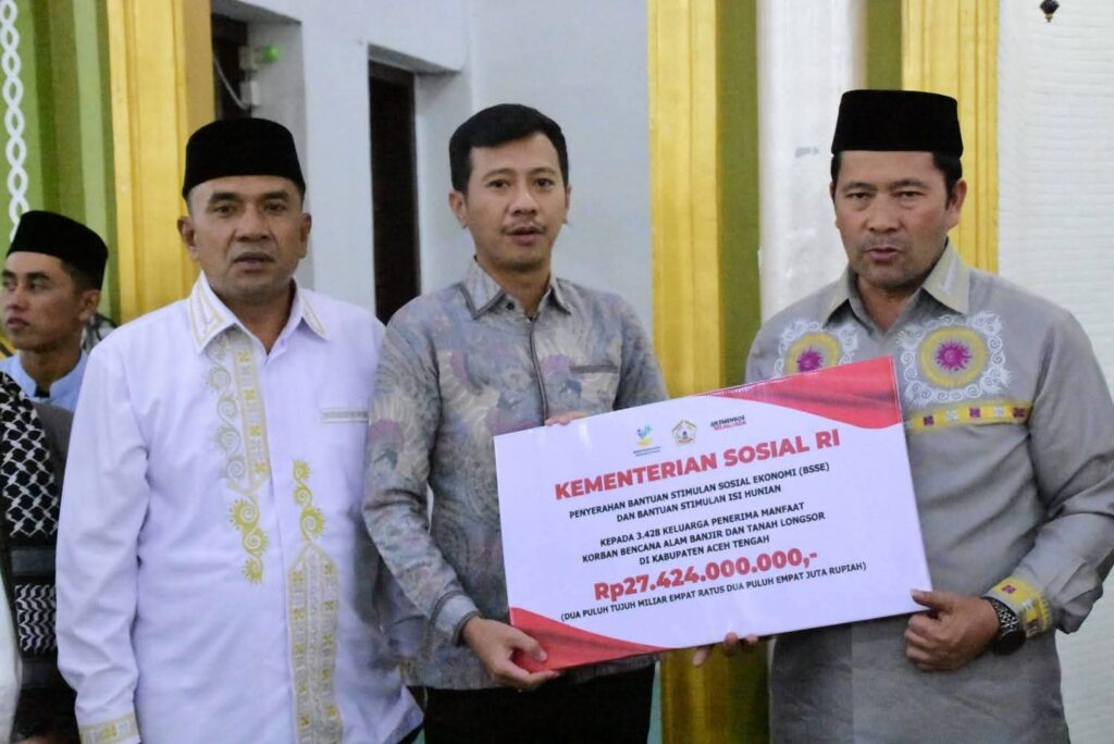 Detikgayonews.com, Takengon | Pemerintah Kabupaten Aceh Tengah menerima bantuan Isi Hunian Tahap I dan Bantuan Stimulan Sosial Ekonomi dari Kementerian Sosial Republik Indonesia dengan total nilai Rp. 27.424.000.000. Penyerahan dilakukan secara simbolis di Masjid Agung Ruhama Takengon pada Kamis, (26/2/2026).