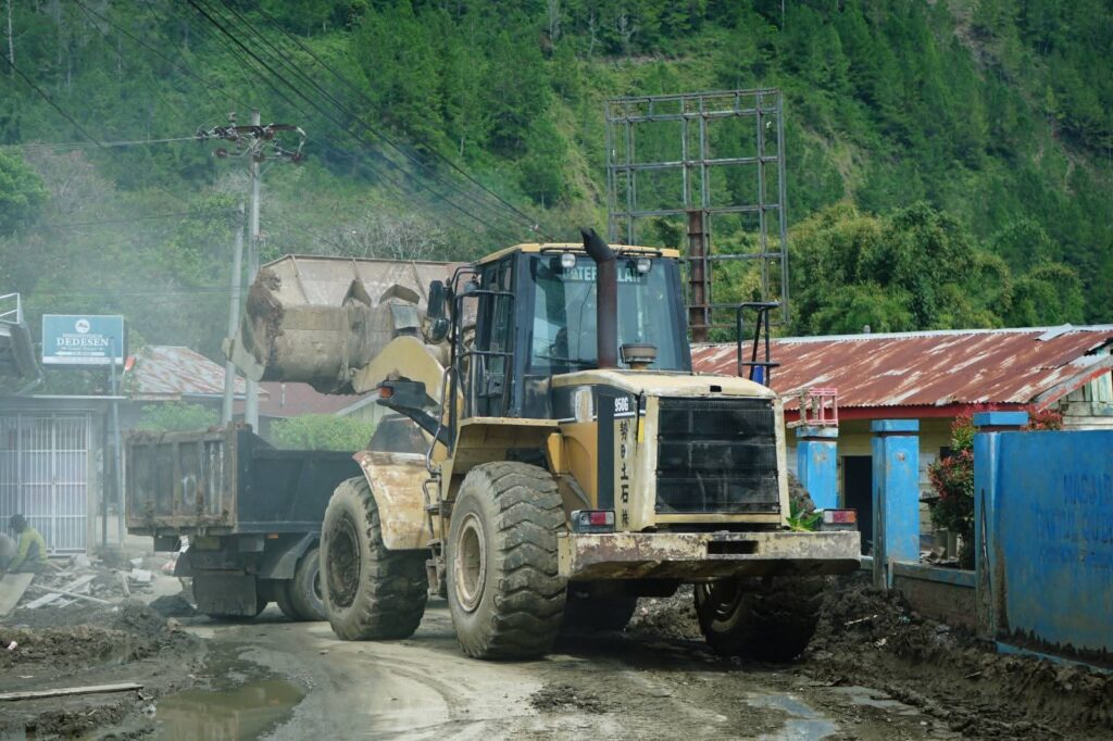 “Kita percepat pembersihan agar jalan ini bisa segera dilalui dengan aman. Alat berat kita turunkan untuk mengangkat lumpur yang menutupi badan jalan,” ujar Bupati di lokasi.