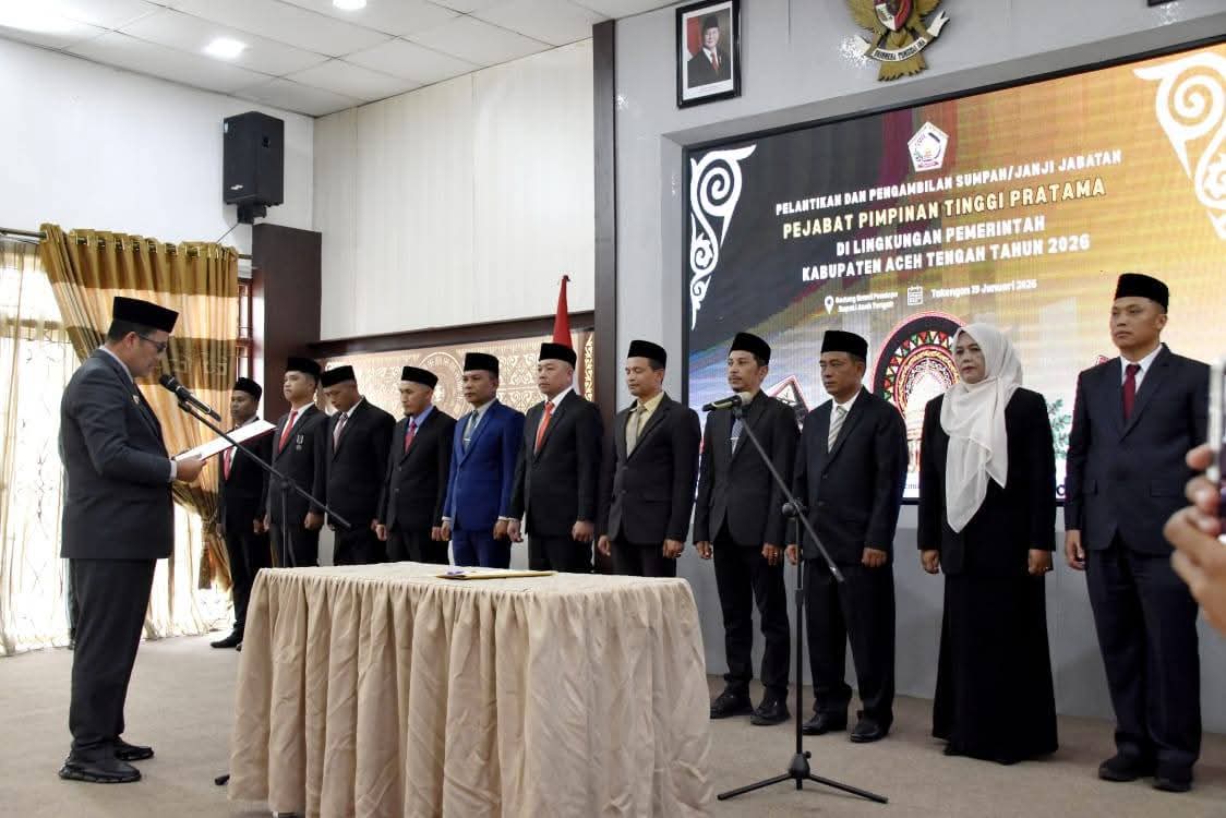 Pengambilan sumpah serta janji jabatan itu, berdasarkan Keputusan Bupati Aceh Tengah Nomor 802/dk01.04/BKPSDM/2026 tentang pengangkatan pejabat pimpinan tinggi pratama.