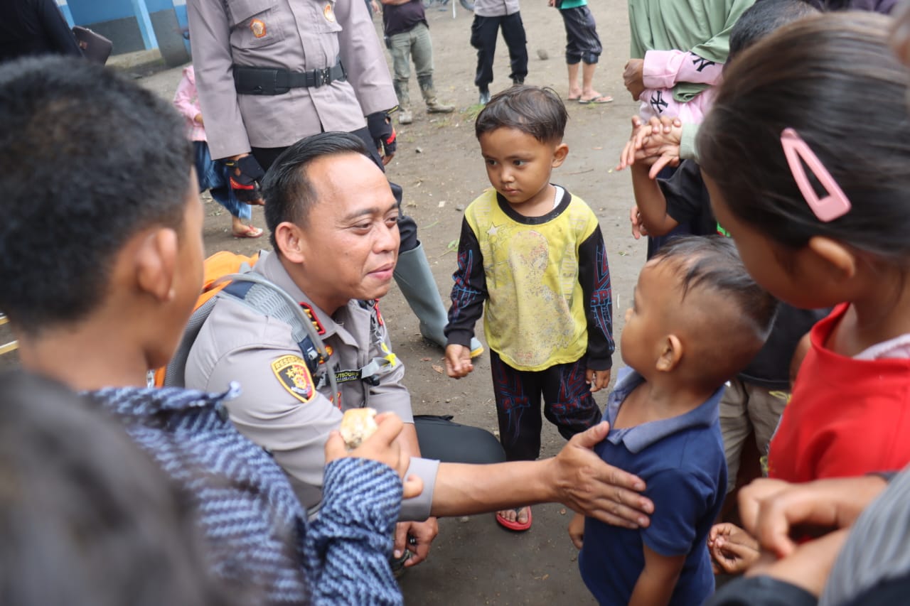 Adapun bantuan yang disalurkan meliputi perlengkapan alat tulis, baju kaos, susu, beras, mi instan, serta bingkisan Polri.