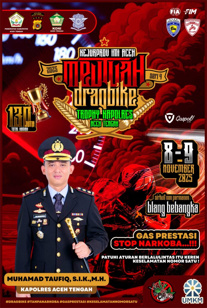 Selain itu, even Drag Bike Piala Kapolres Aceh Tengah, akan menjadi bagian dalam kampanye tentang bahaya penyalahgunaan narkoba di kalangan anak muda.