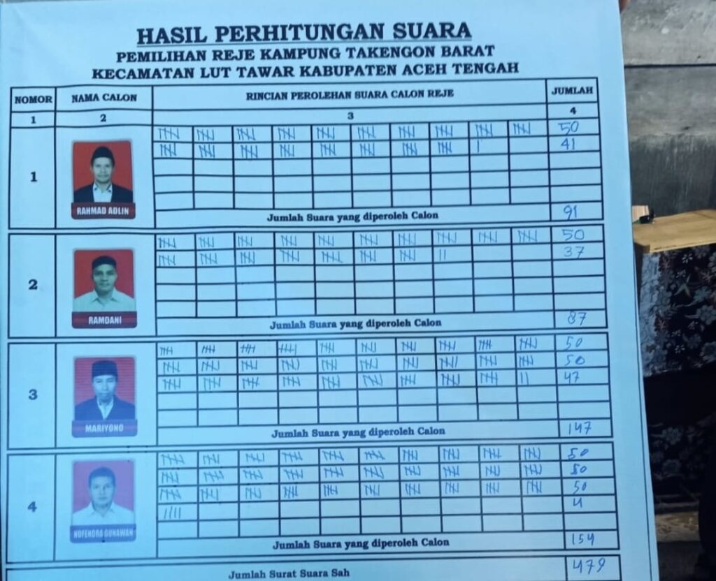 Detikgayonews.com | Takengon – Demokrasi di tingkat akar rumput berlangsung hangat dalam Pemilihan Reje (Kepala Desa)Takengon Barat, Kecamatan Lut Tawar, Kabupaten Aceh Tengah, Sabtu (18/10/2025). Proses pemilihan yang berjalan lancar tersebut akhirnya menghasilkan Novendra sebagai kepala desa terpilih setelah melalui persaingan yang ketat.