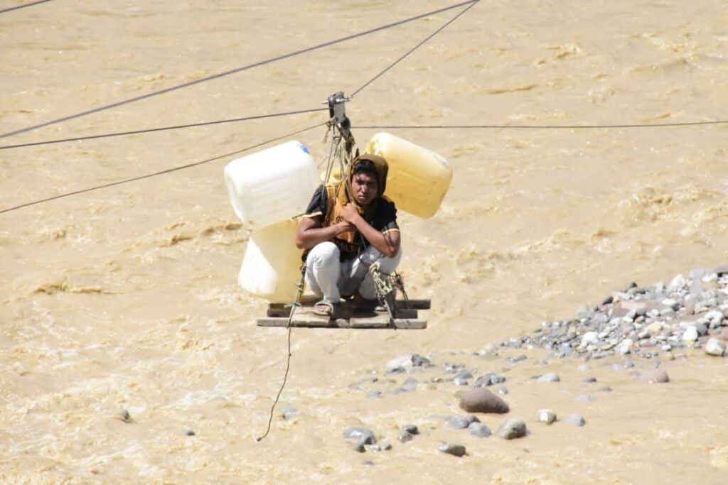 “Semua komoditi unggulan durian, cabai, kopi diangkut dengan cara seperti ini. Bahkan beras dan bantuan logistik pun harus lewat sling. Kita memang dibantu heli, tapi kalau akses darat bisa dipulihkan atau diperkuat, tentu jauh lebih baik”, ujarnya.