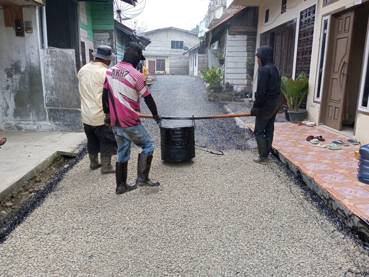 Kondisi itu, setelah dilakukan perbaikan berupa pengaspalan ruas jalan lingkungan sepanjang 50 meter dengan spesifikasi aspal jenis lapen latasir.