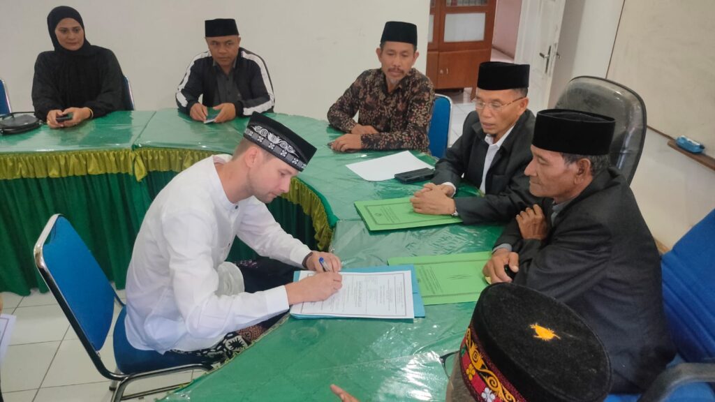 Detikgayonews.com, Takengon – Seorang Warga Negara Asing (WNA) asal Swedia, Last Tom Benjamin Espebo, mengucapkan dua kalimat syahadat di kantor MPU Aceh Tengah, Kampung Merah Mersa, Kecamatan Lut Tawar, Kabupaten Aceh Tengah, Rabu (30/8/2023).