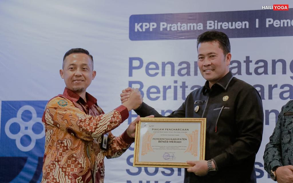 Penghargaan tersebut, diterima langsung oleh Pj Bupati Bener Meriah, Drs. Haili Yoga, M. Si, di sela acara penandatanganan berita acara Rekonsiliasi Penyetoran Pajak Pusat dan Sosialisasi Pemadanan NIK-NPWP di aula KPP Pratama Bireuen, Jumat (24/2/2023).