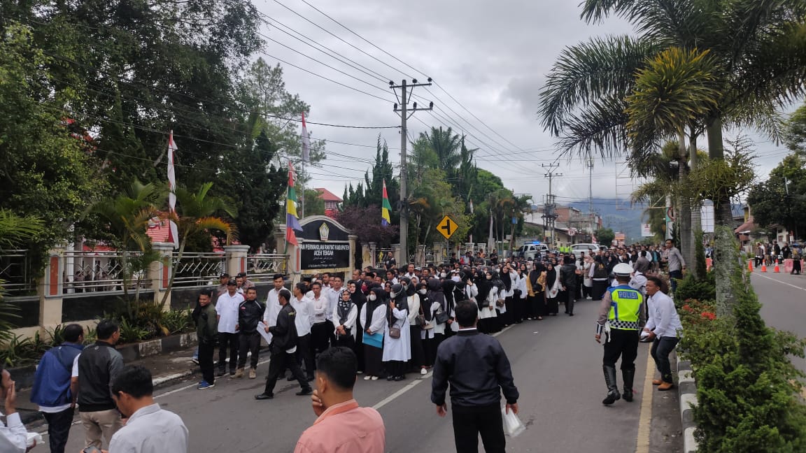Detikgayonews.com , Takengon | Ratusan honorer admistrasi Pemerintahan Aceh Tengah mendatangi Kantor DPRK setempat, beraudiensi menyampaikan audiensi minta penambahan kuota Pegawai Pemerintah dengan Perjanjian Kerja (PPPK), Selasa (05/09/23.)