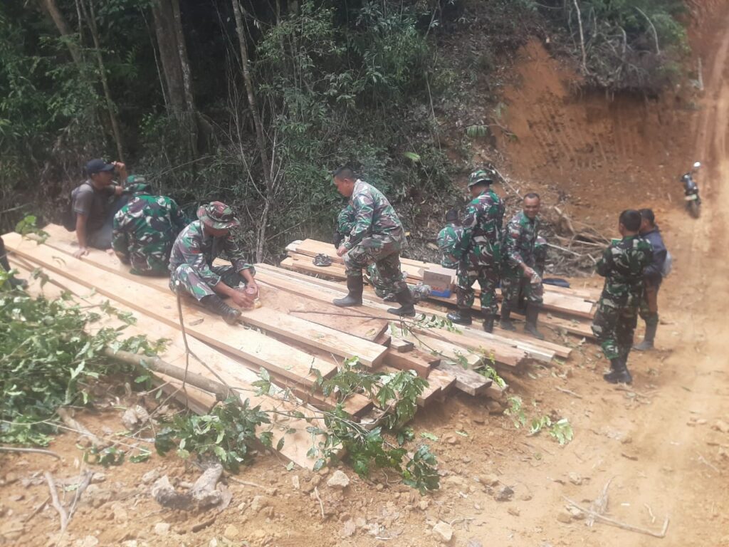 Melalui program TMMD prajurit TNI dan masyarakat berbaur menjadi satu dalam mewujudkan pembangunan di pedesaan. Salah satunya jembatan yang akan dibangun berkontruksi kayu.