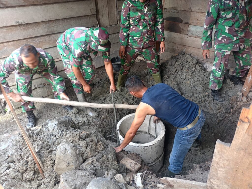Salah satunya membenahi sanitasi milik warga di Kampung Kute Keramil, Kecamatan Linge, Jumat (10/10/2025). Personel TNI, bahu membahu membenahi MCK milik warga bernama Tatang lantaran sanitasi dirumahnya dinilai sudah tidak layak.