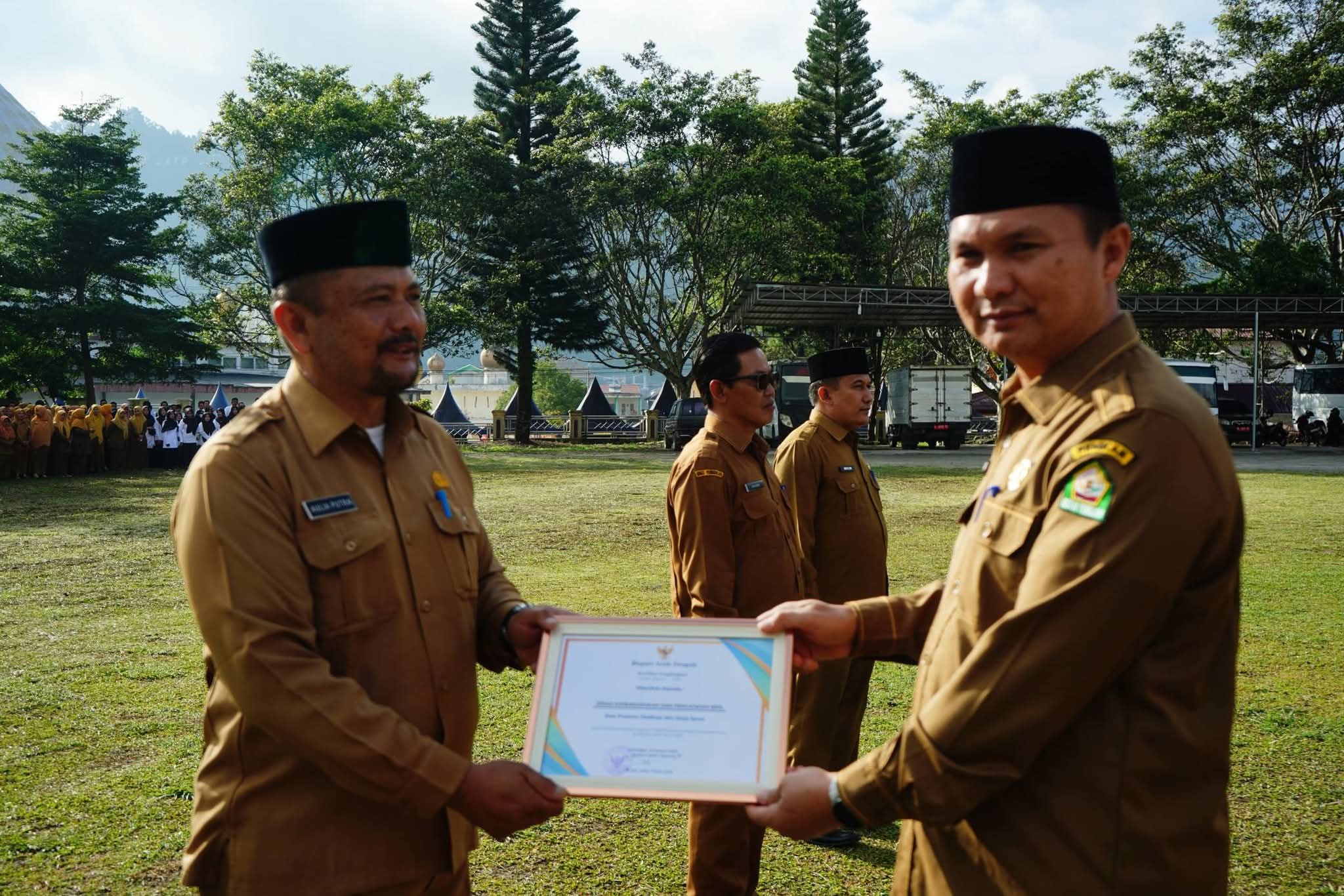 Penghargaan tersebut diserahkan langsung oleh Sekretaris Daerah Kabupaten Aceh Tengah, Drs. Mursyid M.Si, dalam gelaran Apel bersama peningkatan kapasitas ASN dan pelayanan publik paska bencana Hidrometeorologi yang berlangsung di Halaman Setdakab Aceh Tengah, Senin (12/1/2026).